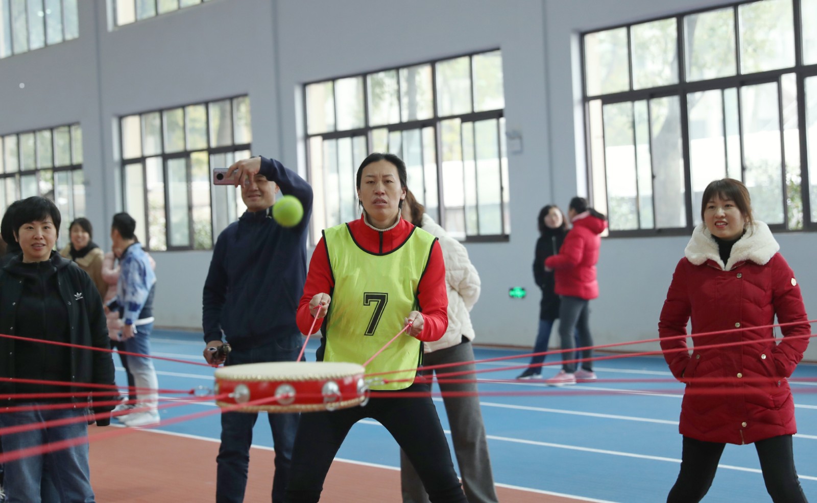 本次趣味賽設(shè)有《擁抱明天》、《奔跑吧,女神》和《同心擊鼓》三個(gè)項(xiàng)目,省體育系統(tǒng)24個(gè)單位組成的21支隊(duì)伍和裁判員、教練員、工作人員共200余人參與。